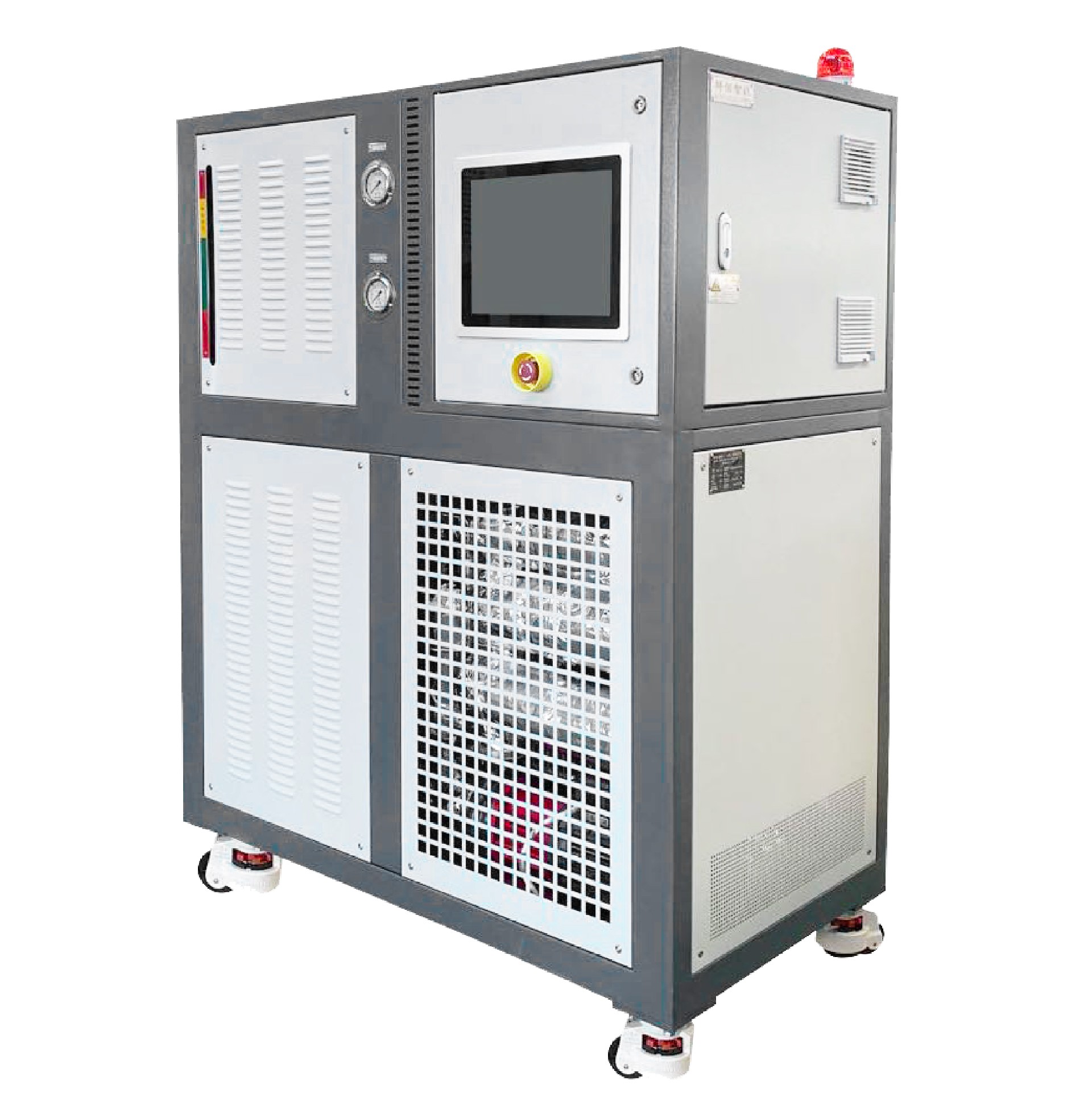 油溫機(jī)通常由加熱系統(tǒng)、冷卻系統(tǒng)、液體循環(huán)系統(tǒng)和控制系統(tǒng)組成。加熱系統(tǒng)采用電熱元件或者燃燒器將液體加熱至設(shè)定的溫度,而冷卻系統(tǒng)則通過冷卻器或者冷卻介質(zhì)來降低液體溫度。液體循環(huán)系統(tǒng)通過泵將液體從容器中抽出并循環(huán)流動(dòng),在加熱或冷卻后再返回容器。